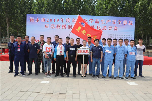 6月27日,在衡水市2019年度危險化學品生產安全事故應急救援演練暨技能比武競賽中,我公司圓滿完成了液氨泄漏事故應急救援演練,同時在全市14支代表隊參加的4個比武項目中,我公司代表隊一舉奪得3個項目的第一名,一個項目的第四名,具體為: 王向陽獲得防化服著裝空呼佩戴項目第一名,曹建強、肖保久獲得止血包扎項目第一名,李亞男獲得蘇生器使用項目第一名,田增祥獲得心肺復蘇項目第四名,在此向各位選手表示祝賀,向各位選手刻苦訓練、不畏強手、沉著比賽展現出的化學精神學習,讓我們共同為進一步加強公司應急管理,實現公司安全穩定生產做出新的貢獻!