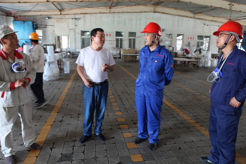 韓主席囑咐車間管理人員做好職工防暑降溫工作