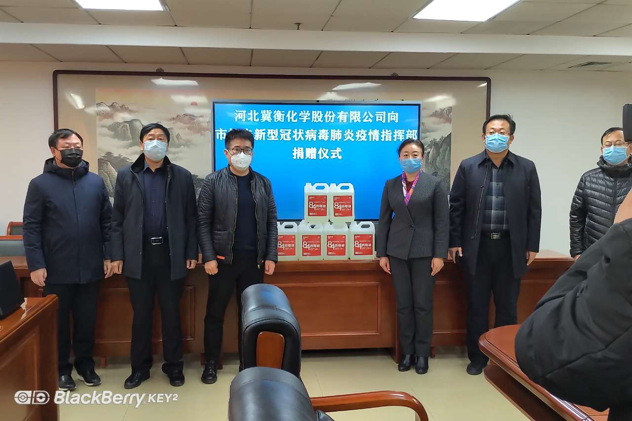 我公司為衡水市疫情防控工作指揮部捐贈84消毒液儀式