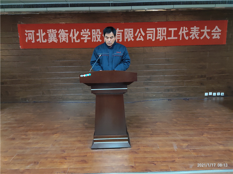 1月17日上午8時,九屆一次職代會暨2020年度股東會舉行閉幕式,首先來我公司在內的五名職工代表作了表態發言,在聽取大家的發言后,肖秋生董事長結合企業當前形勢作了題為《練內功 加強基礎管理  謀戰略 打造雙百冀衡》的總結講話。肖董事長首先肯定了我集團2020年生產經營取得的優異成績,并從疫情安全管控、安全環保管理、創新經營工作、強化基礎管理、企業上市工作等方面進行了工作安排部署,并提出了要進一步加大安全環保投資力度、建設綠色工廠、智慧工廠的企業發展要求,鼓勵大家再創佳績,爭取新的勝利,為早日實現百億冀衡的夢想、打造百年冀衡的宏偉大業貢獻新的力量。